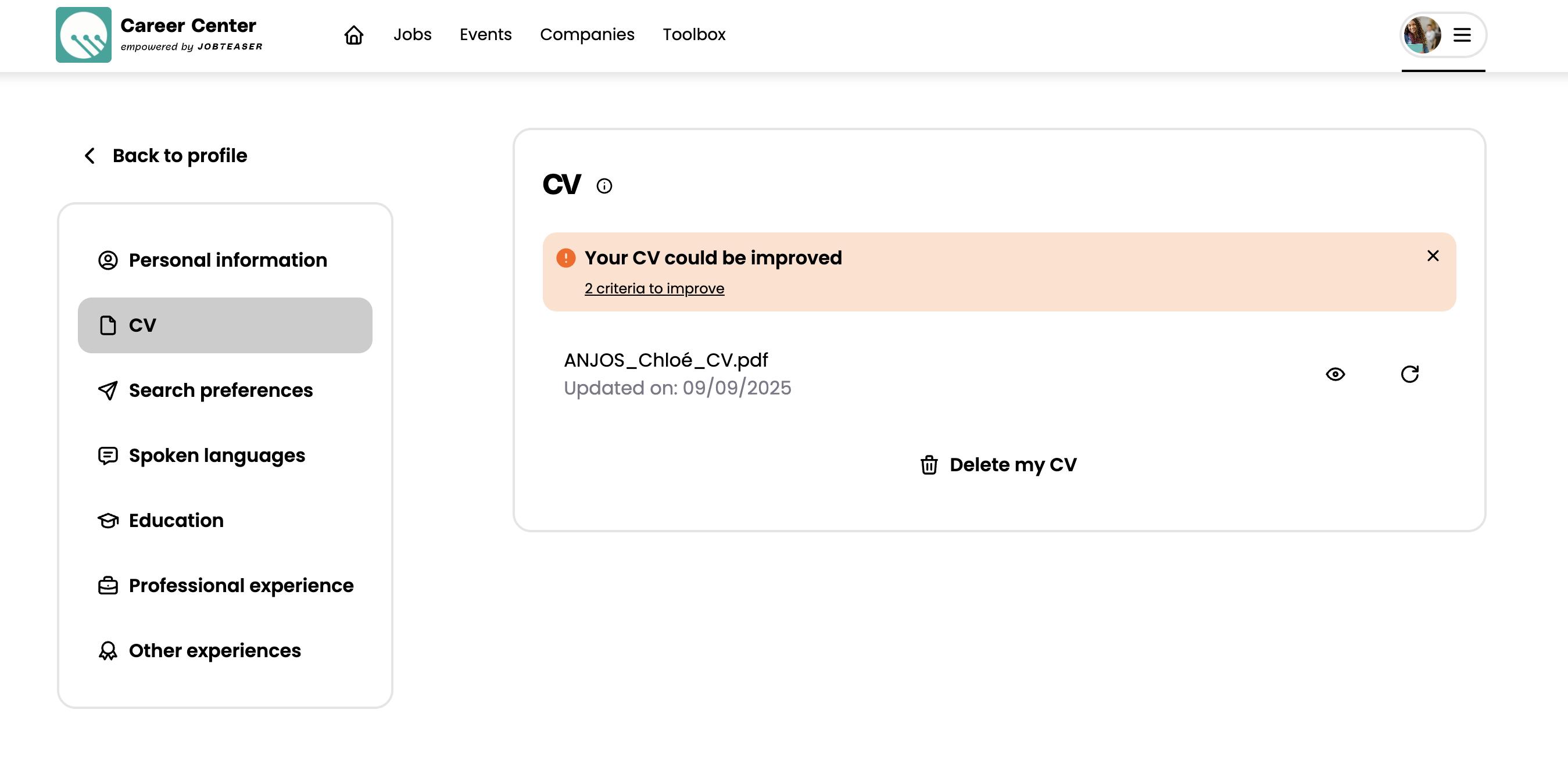 Solo tendrás que modificar tu CV según las recomendaciones y volver a subirlo.