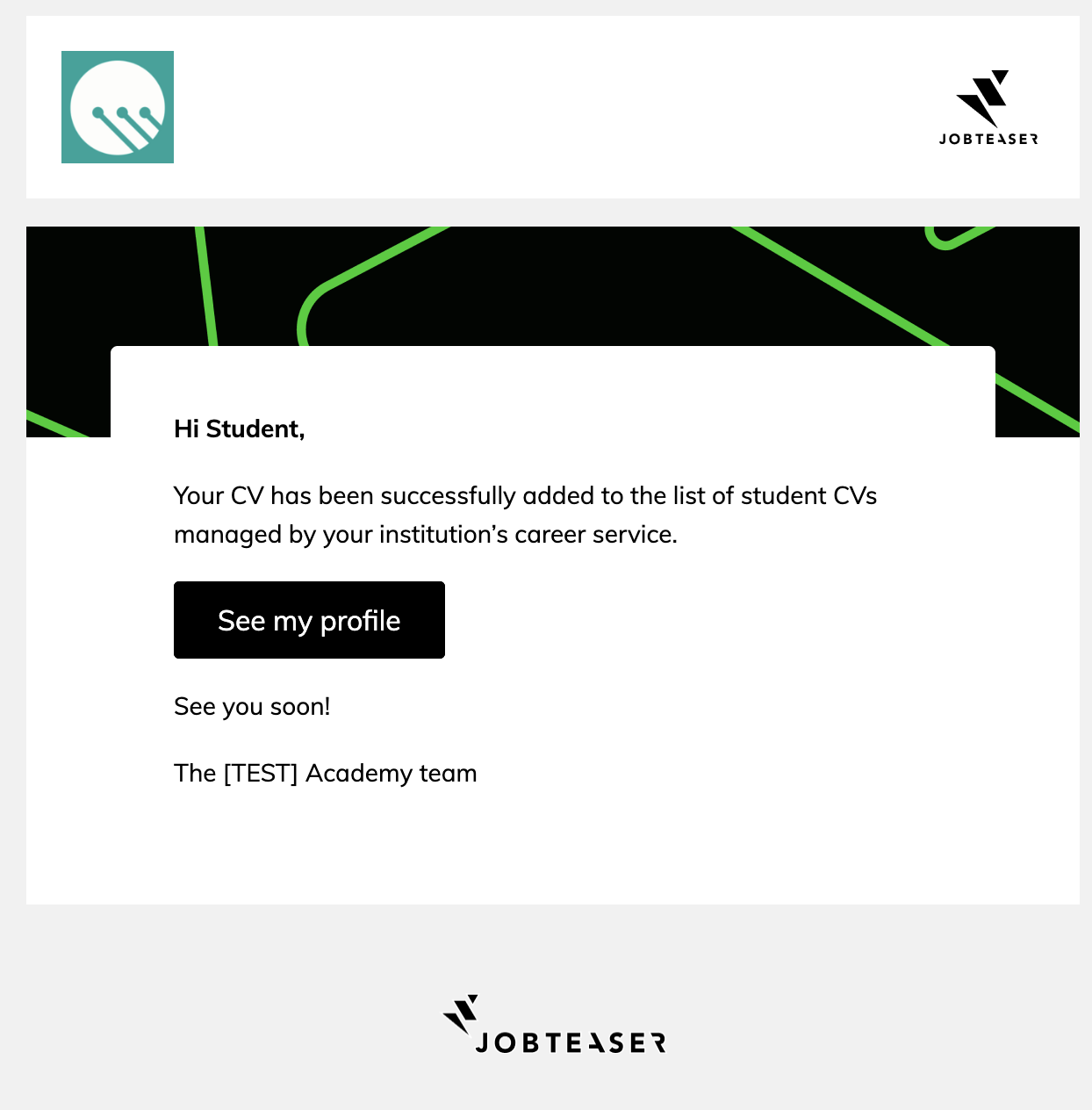 Lors de votre première connexion, si vous téléchargez un CV lorsque cela vous est demandé par JobTeaser.